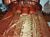 Product Description Brighten your bedroom & transform your bed with the royal grandeur of Indian culture. Go for a dramatic makeover of your bed and this bedspread would become a conversational piece of art. This bedspread is a perfect blend of luxurious style & enriching beauty. The sparkling embellishments in gold & silver will lend a spectacularly ethnic look and add style to your room.