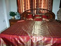 Product Description Gorgeous banarasi silks woven by mastercraftmen of Varanasi are used to make this bedding set.Beautifully adorned with elaborate golden brocade and Zari borders work these bring in an exotic ambiance.Update your bedroom decor with this elegant bedspread.