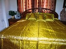 Product Description Gorgeous banarasi silks woven by mastercraftmen of Varanasi are used to make this bedding set.Beautifully adorned with elaborate golden brocade and Zari borders work these bring in an exotic ambiance.Update your bedroom decor with this elegant bedspread.