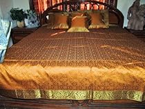 Product Description Gorgeous banarasi silks woven by mastercraftmen of Varanasi are used to make this bedding set.Beautifully adorned with elaborate golden brocade and Zari borders work these bring in an exotic ambiance.Update your bedroom decor with this elegant bedspread.