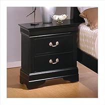 Product Description Built with solids and veneers, this Deep Black Louis Philippe Nightstand by Coaster is a more economical way to get this classic piece into your home. The beautiful casework of the Louis Philippe style is distinguished by straight lines capped with elegant curved moldings. In general the subtle curves and rich color of this style gives a feeling of class that isn't overstated. This can also be purchased in one of the Louis Philippe Deep Black Bedroom sets. This nightstand set is usually in stock and ships with in the continental US. Coaster 201072 Louis Philippe Nightstand Features:Solids and Veneer ConstructionContrasting HardwareDeep Black FinishCoaster 201072 Louis Philippe Nightstand:Nightstand (Coaster Model #201072) 16W x 26L x 27HSome Assembly RequiredFinish: Deep BlackCoaster Factory Warranty:Frames: 1-year limited warrantyCushions: 1-year limited warrantySprings: 1-year limited warrantyLeather: 1-year limited warrantyPlease call us at efurnitureshowroom.com, 1-800-5! 03-1968, if you have any questions about this product's warranty